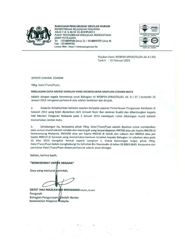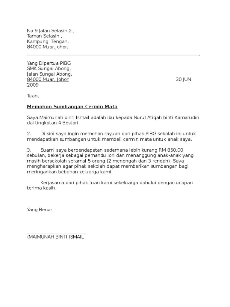 Bantuan cermin mata ini diharapkan dapat membantu pelajar mengikuti proses pembelajaran dengan lebih baik dan selesa terutamanya apabila perlu berinteraksi menerusi skrin komputer setiap hari. Contoh surat penutupan harga besi tua. Contoh Surat Permohonan Bantuan kemaskini terbaru.